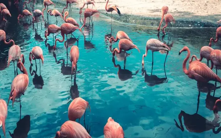 الفلمنكو لا يولد باللون الوردي؛ بل يكتسب لونه من أصباغ الكاروتينويد الموجودة في الطحالب والحيوانات المائية الصغيرة. ومع تناول هذه الأطعمة وهضمها وتساقط الريش، تُودع هذه الأصباغ في الريش والجلد والفواتير، مما يجعل اللون الوردي سجلًّا حيًّا للنظام الغذائي والصحة.