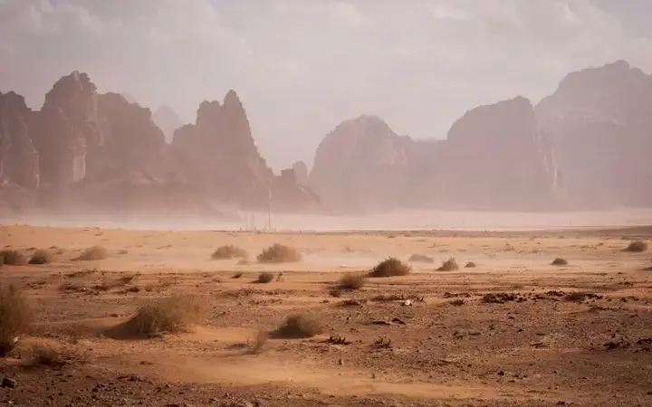 عند غروب الشمس، تبدو جبال الصحراء أرق دون فقدان خشونتها. يكشف الضوء المنخفض الزاوية عن الحواف، والملمس، والعمق، والدفء، مما يحول الحجر القاسي إلى مشهد هادئ ومتدرج يشعر بشدة وراحة في آن واحد.