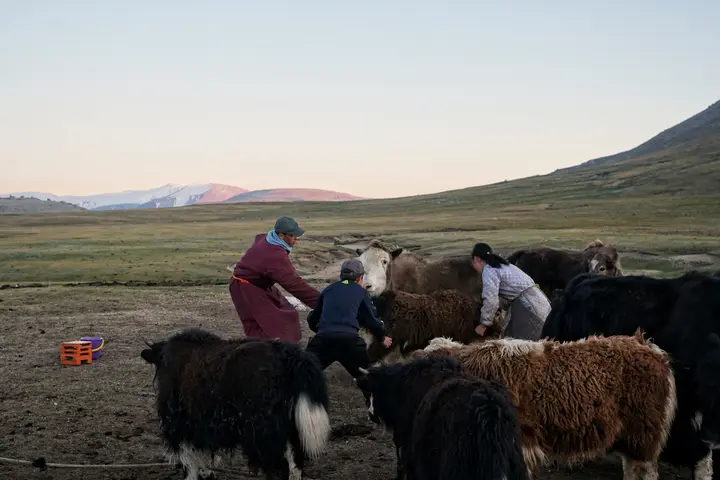 يجتمع الياك والرعاة التبتيين مجددًا في همسة هادئة من الحياة الريفية. تنصب الخيام بعناية، ويستعد الرعاة للراحة بجوار رفيقهم الوفي. وفي هذا الوقت الهادئ والسلمي، يشعر الجميع بالامتنان بوجود الياك في حياتهم. فعلاقتهم الرائعة والتعاونية تعكس قيم التضامن والاحترام والحب للطبيعة، وتعلمنا أنه بينما نحن جزء من هذا العالم، يجب أن نعيش بانسجام معه للحفاظ على هذه العلاقة الجميلة التي تربطنا جميعًا.