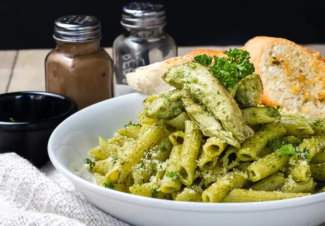 تعتبر وجبة المعكرونة الشهية بصلصة البيستو الخضراء خيارًا رائعًا للاستمتاع بوجبة سريعة ومشبعة خلال عطلات نهاية الأسبوع المزدحمة. إن هذه الوجبة تجمع بين النكهات الطازجة للأعشاب الخضراء وجبن البارميزان اللذيذ، مما يضفي عليها طابعًا فريدًا ولذيذًا. تحتاج هذه الوجبة إلى عناصر قليلة وتحضير سريع، مما يجعلها الاختيار المثالي للأوقات التي ترغب في تناول وجبة شهية لكنها لا تستغرق وقتًا طويلًا في التحضير.