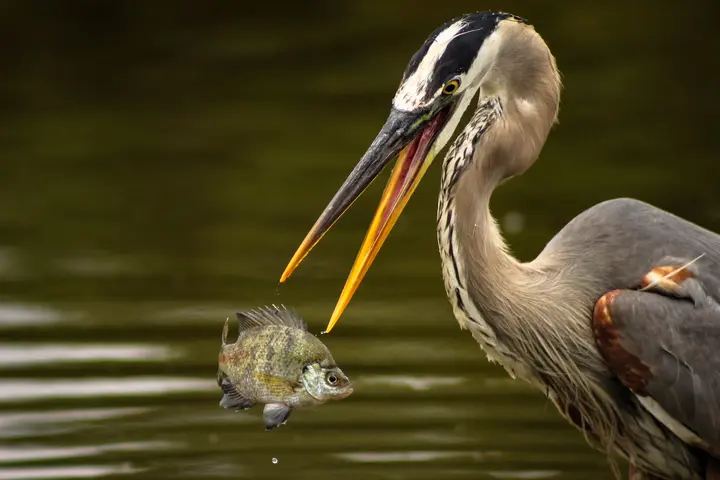 2. الصبر والتحرك السريع: يتميز البجع المهيب بصبره الفائق أثناء انتظار الفريسة. يقف البجع بلا حراك لساعات طويلة، وعندما يرى فرصة مناسبة، ينقض على فريسته بسرعة هائلة وبدقة مذهلة. إن هذا التحرك السريع والمدروس هو ما يجعل البجع المهيب صيادًا لا يقاوم.