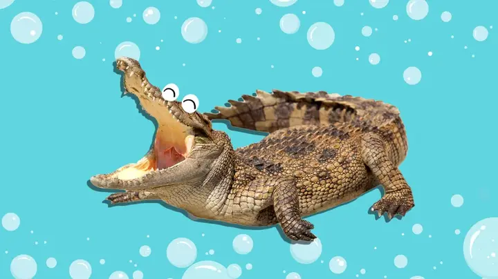 لسان التمساح مُثبَّتٌ في مكانه، ممّا يعني أنه لا يستطيع إخراج لسانه أبدًا. وتُعدّ هذه ميزةَ أمان بالنسبة لفريسته عندما يغلق فكيه بسرعة عليها.