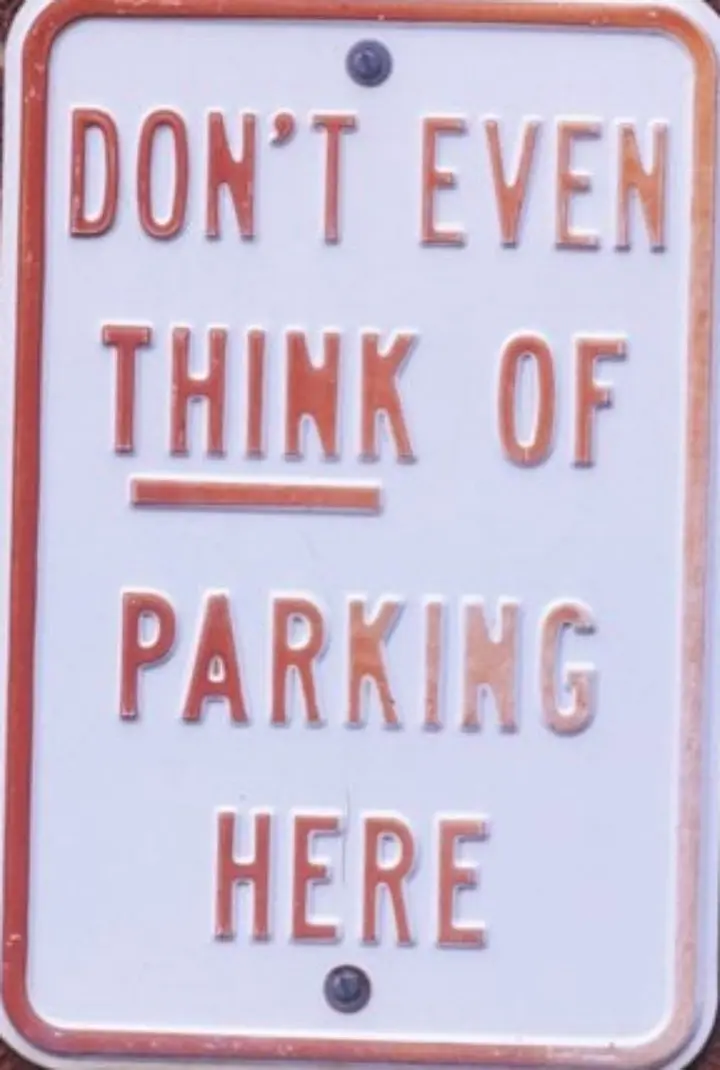 لا أحد يُحبّ أن يُقال له ما يجب فعله أو ما يفكر فيه. أو، بشكل أكثر دقة، ما لا ينبغي التفكير فيه. الاحتمالات هي أن هذا مكانٌ رئيسي لوقوف السيارات. لقد ارتكبوا خطأً بجعل الأمر أكثر إغراءً من خلال جعله محظورًا. سأوقف سيارتي هنا حتى لو لم أكن أفكِّر في التوقف!