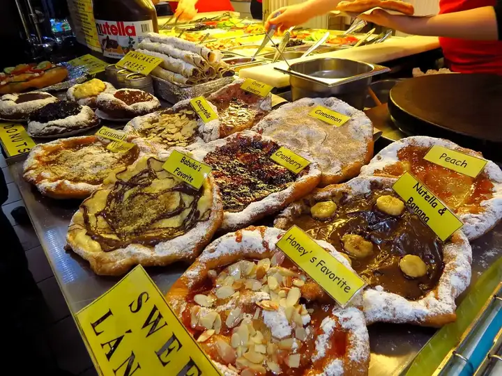 • لانغوش: عجينة مقلية تُقدم مع الثوم والجبن والقشدة.