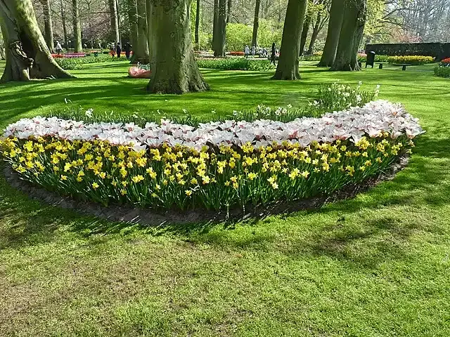 بمجرد دخولك إلى كيوكينهوف، ستندهش من تنوع الألوان التي تحتضنها هذه الحديقة. كل زاوية وكل مسار سيأخذك إلى مشهد مختلف، حيث تُرتب الزهور بطرق فنية رائعة تشكل تصميمات خلاقة ومتنوعة. التوليب، الزهرة الأشهر في هولندا، يأتي في أكثر من 800 نوع مختلف ويتم زراعته بألوان وأشكال مذهلة.