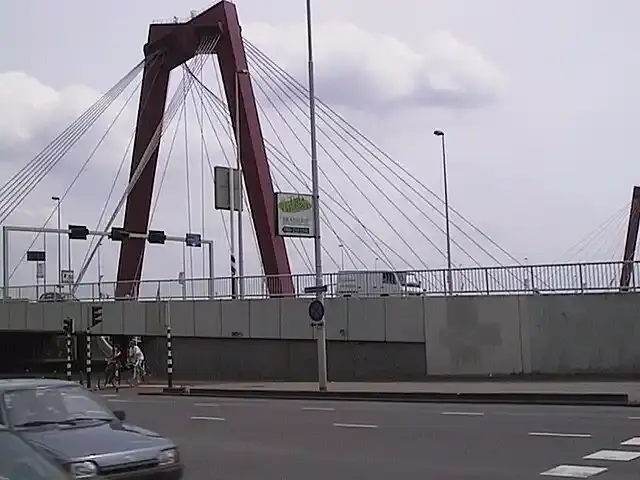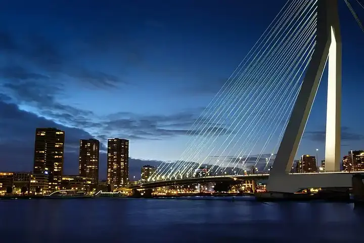 جسر إيراسموس (Erasmusbrug): يعرف أيضًا باسم "البجعة" بفضل هيكله المتميز والمنحني. يمتاز هذا الجسر بكابل معلق يصل طوله إلى 284 مترًا، ويعد واحدًا من أبرز المعالم في روتردام. إنه ليس مجرد ممر، بل هو رمز للقرن الحادي والعشرين والتصميم الحديث.