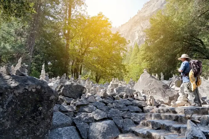 توفر يوسمايت مجموعة متنوعة من مسارات المشي التي تناسب جميع المستويات. سواء كنت مبتدئًا أو متسلقًا محترفًا، ستجد المسار الذي يناسبك. من أشهر هذه المسارات مسار ميست تريل (Mist Trail) ومسار ميرور ليك (Mirror Lake Trail).