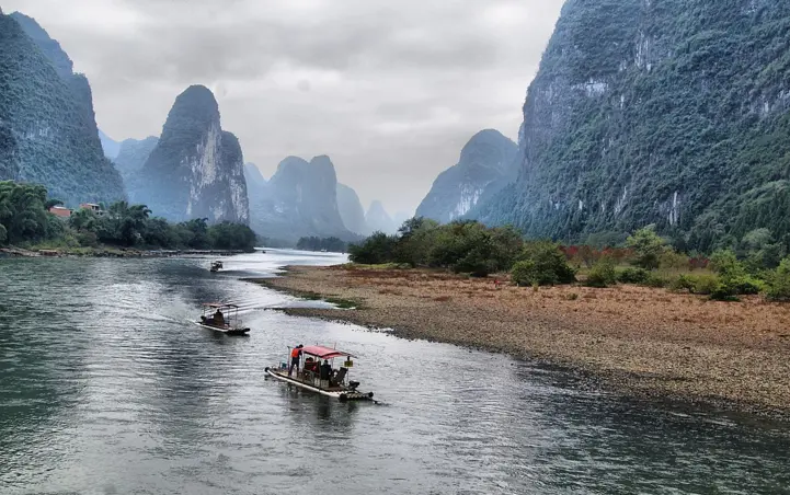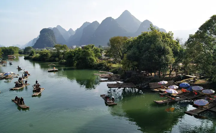 يجري نهر لي عبر مناظر خلابة وجبال شاهقة وأراضي زراعية خضراء. هذا نهر ساحر يعد واحدًا من أجمل المعالم الطبيعية في الصين.