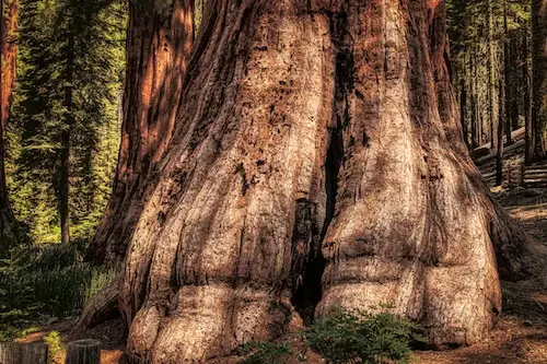 عندما يتسلل الضوء من خلال الأوراق الكثيفة للجنرال شيرمان، تبدأ قصة الجمال الساحرة. تراقص أشعة الشمس بلطف فوق أرضية الغابة، تسللها بلطف وسط أغصان الشجر الضخمة. تشتعل الألوان الذهبية والنحاسية ، مشعة بألق يفوق الخيال. لا توجد كلمات قادرة على وصف هذه الرؤية الساحرة التي تبدو وكأنها لوحة فنية تخرج من العمق الحي للطبيعة.