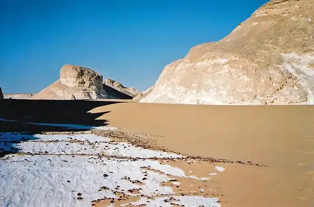تقع الصحراء البيضاء في واحة الفرافرة بالصحراء الغربية من مصر وهي بمثابة كنز من العجائب لما تحتوي عليه من مناظر طبيعية وصخور مميزة مما يعطي انطباعًا بأنك قد غادرت كوكب الأرض بالرغم من بعدها 5 ساعات من مدينة القاهرة. سميت بهذا الاسم لأن أرضها تتكون من الطباشير الأبيض الثلجي، كما تنتشر بها تركيبات صخرية جيرية من نفس اللون الثلجي التي تكونت عن طريق الرياح مما يضفي على المنطقة وضعا جيولوجيًّا نادرًا. من أشهر تلك التركيبات الصخرية هي منطقة عش الغراب التي تتشكل على شكل عش طائر، كما اشتهرت بالحفريات اللافقارية والأشجار الحجرية وكثبان رملية ناصعة البياض.عادةً ما تستغل النباتات الأماكن المنخفضة بتلك الصحراء حتى تحولت إلى بساتين من أشهرها منخفض الفرافرة. يوجد أيضًا كهف "الجارة" الذي يعتبر من أغنى الكهوف في العالم من حيث الترسبات الجيرية المتنوعة، ويبلغ عمقه حوالي 50 مترًا تحت الأرض، ويزين مدخله بعض النقوش القديمة. وهناك تكتل من الرمال الناعمة المرتفعة التي يستمتع بها السياح بالقيام برياضة التزلج على الرمال.