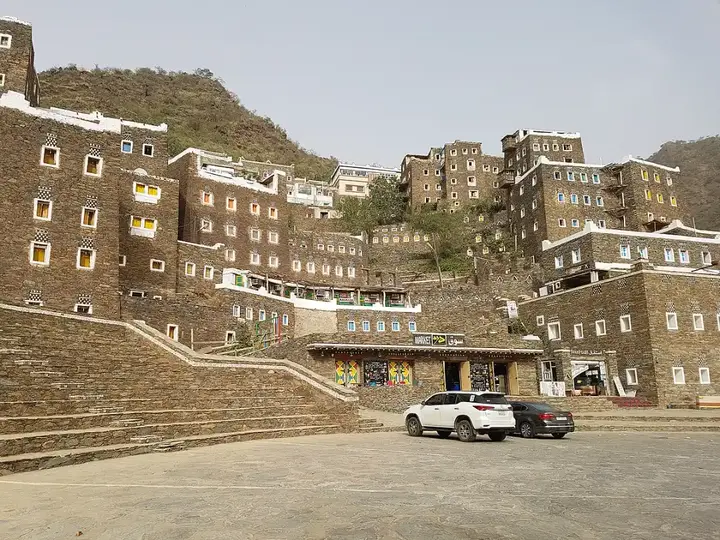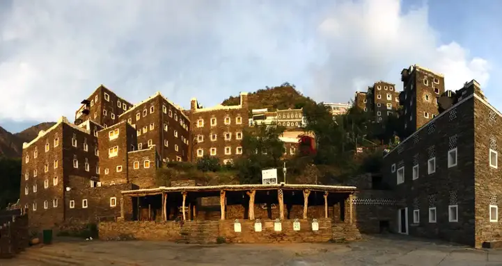 وقد ظلت لعشرات السنين ظلت قرية رجال ألمع تحتفظ بجماليتها الواضحة في أبراجها المبنية بالحجر والمرصعة بالكوارتز الأبيض مما جعلها من المواقع الأثرية في السعودية المرشحة ضمن قائمة التراث العالمي لليونسكو وهي مكونة من ٦٠ قصرًا والتصميم المميز الداخلي من أهم ما يميزها في استغلال المساحات ومن أهم القصور التي تحتضنها قصر الداعية معجب وجابر