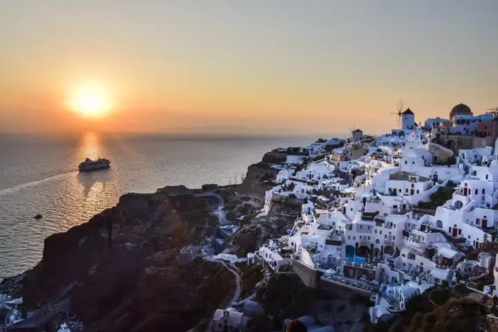 تقع جزر سانتوريني الساحرة في بحر إيجة، وهي جزء من أرخبيل الكيكلادس في اليونان. تتميز هذه الجزر بمناظرها الطبيعية الخلابة وتاريخها الغني الذي يعود إلى آلاف السنين. كانت سانتوريني موقعًا لأحد أكبر الانفجارات البركانية في التاريخ البشري، والذي شكّل تضاريسها الفريدة ومناظرها الطبيعية الرائعة. تعتبر اليوم وجهة سياحية رئيسية تجذب الزوار من جميع أنحاء العالم بجمالها الفريد وثقافتها المحلية الغنية.