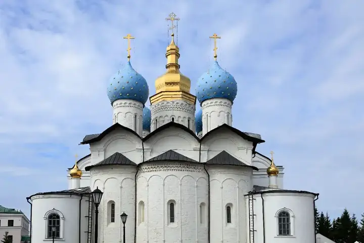 على بعد خطوات من مسجد قول شريف داخل أسوار الكرملين، تقف كنيسة البشارة، وهي واحدة من أقدم الكنائس الأرثوذكسية في روسيا. بقبابها الذهبية وتصميمها الفخم، تشكل الكنيسة نقطة توازن مذهلة بجانب مسجد قول شريف، مما يرمز إلى التعايش السلمي بين الإسلام والمسيحية في كازان.
