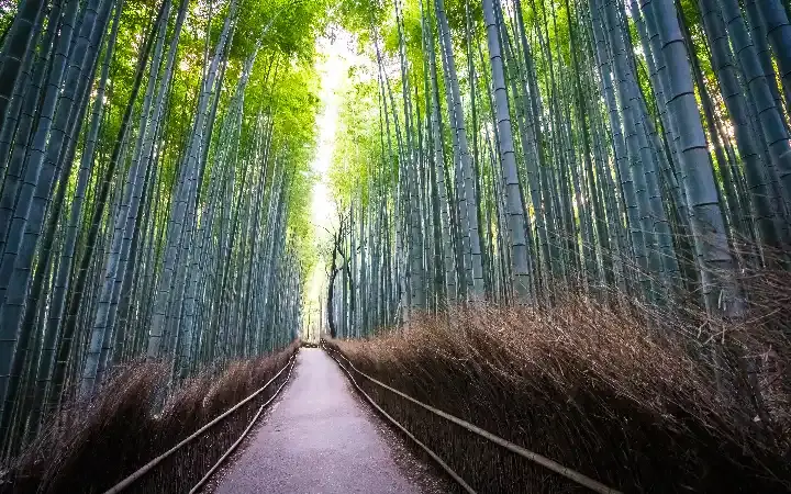 تمتد غابة البامبو على مساحة واسعة حيث تشكل أعمدة البامبو العالية ممرات طبيعية مذهلة. عندما تسير بين هذه الأعمدة الخضراء الشاهقة، ستشعر وكأنك في عالم خيالي. الضوء الذي يتسلل عبر السيقان يمنح المكان وهجًا ساحرًا، كما أن حركة الرياح التي تمر عبر أشجار البامبو تصدر أصواتًا موسيقية ناعمة تضفي جوًا من الهدوء والسكينة. علاوة على ذلك، يوفر هذا المكان بيئة مثالية للتأمل والتخلص من ضغوط الحياة اليومية، حيث يمكن للزائر أن يشعر بالاتصال المباشر مع الطبيعة.