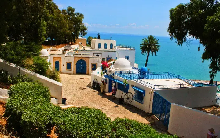 التوجه لزيارة سيدي بوسعيد وهو من أهم المناطق التي تستحق الزيارة في العاصمة تونس. الهندسة الأندلسية والموقع الساحر المطل علي البحر هو مزج بين طبيعة ساحرة وعمارة فنية وتاريخ زاخر سيترك أثر قوي في نفسك.