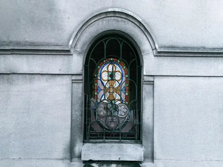 ابحث عن: النقوش الخشبية المعقدة والنوافذ الزجاجية الملونة التي تلقي أنماطًا ملونة.