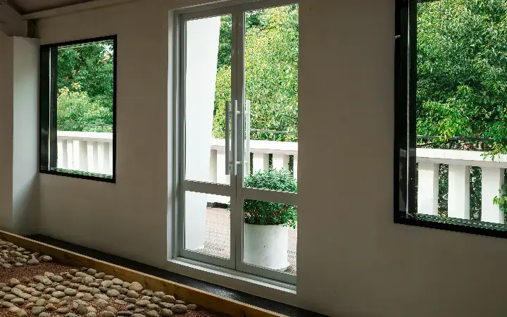 الاختيار: ستائر شفافة أو مظلات ذكية بلون أبيض أو رمادي لتوزيع الضوء.