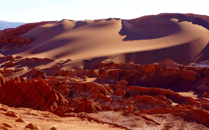 صحراء أتاكاما في شمال تشيلي وجهة ساحرة لمحبي المغامرة والتصوير، بتضاريسها الغريبة وشمسها الساطعة وليلها المرصع بالنجوم. وادي القمر، الينابيع الساخنة، وبحيرات الملح تقدم تجارب لا تُنسى وسط طبيعة آسرة يخطف جمالها الأنفاس.
