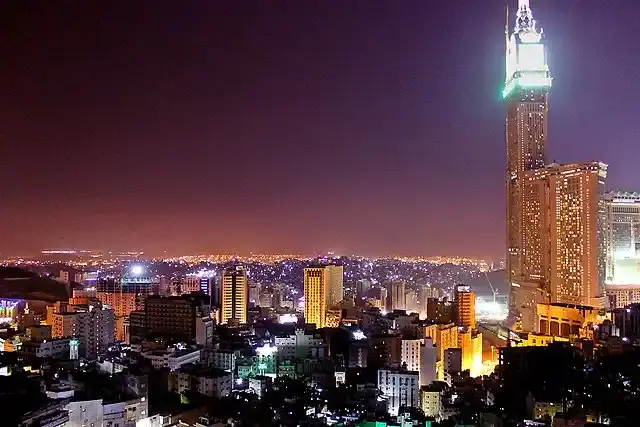 برج الساعة في مكة هو تحفة معمارية مذهلة، يشتهر بأنه يضم أكبر ساعة في العالم، ويمكن رؤية واجهته من جميع أنحاء مكة. يتميز بزخارفه الإسلامية ومول فاخر يحتوي آلاف المحلات، كما أنه مزود بأحدث التقنيات ويعتبر من أطول الأبراج عالميًا.