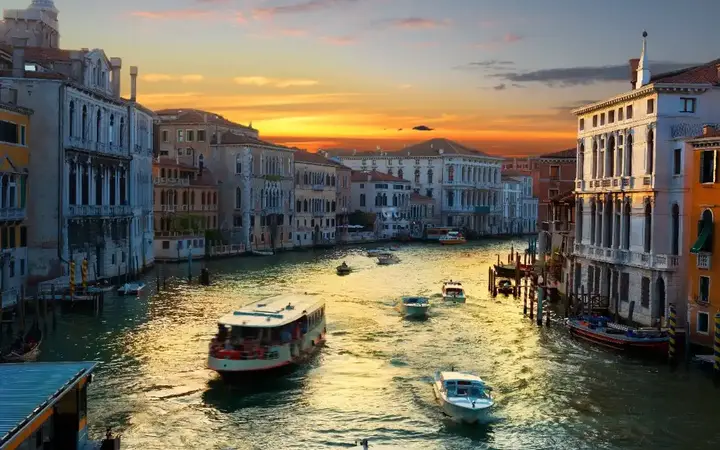 فينيسيا، مدينة القنوات الساحرة، تأسر القلوب بجسورها الرومانسية، وجندولها الأنيق، وكرنفالها المذهل. تمتزج فيها روعة الفن والتاريخ مع نكهة بحرية لذيذة، مما يجعل كل زيارة رحلة لا تُنسى عبر الزمن والجمال.