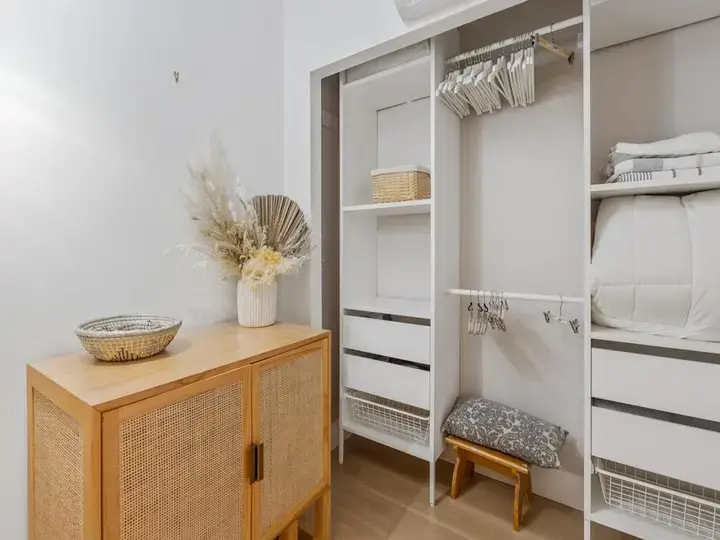 بمجرد أن تجمع الملابس المثبتة وتنقل القطع التي ربما تُستعمل يوماً ما بعيداً، تصبح الخزانة أكثر هدوءاً بسرعة. لم تصبح فجأة أكثر أناقة. إنها فقط تتوقف عن مطالبة نفسها في أيام الأسبوع بالبحث عبر الضوضاء البصرية.