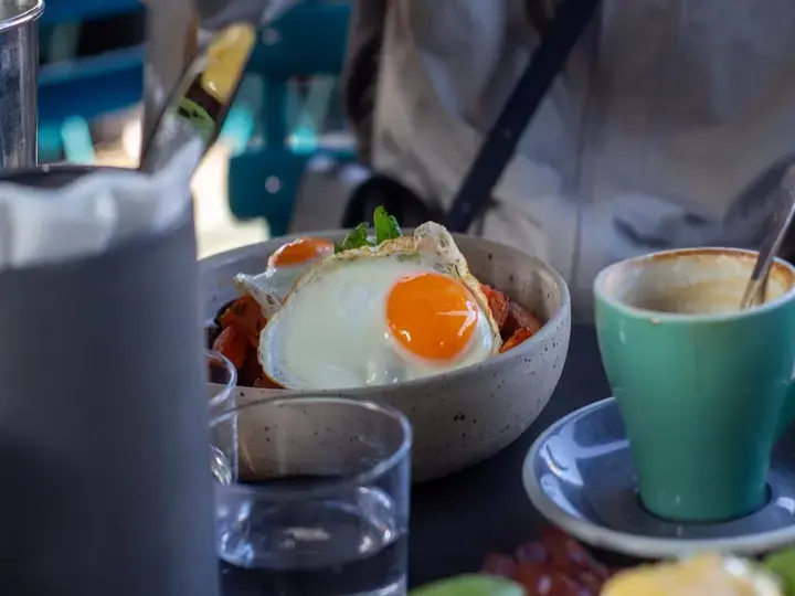القهوة ليست القصة الغذائية الرئيسية في هذه الوجبة، لكنها ما تزال تؤدي دورًا. فبالنسبة إلى كثيرين، هي جزء من الشهية والروتين واليقظة، ويمكن لاستهلاك القهوة باعتدال أن ينسجم جيدًا مع نظام غذائي صحي. وتقول إدارة الغذاء والدواء الأمريكية إن تناول ما يصل إلى 400 ملليغرام من الكافيين يوميًا لا يرتبط عمومًا بآثار خطيرة لدى معظم البالغين الأصحاء. وعمليًا، لا بأس بالقهوة هنا؛ فقط لا ينبغي أن تكون هي الإفطار بمفردها.