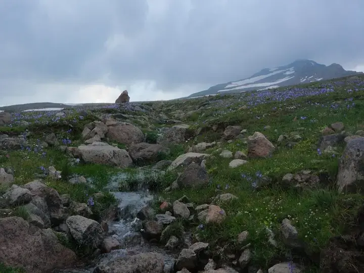 إذا كانت هذه من رحلاتك الأولى فوق خط الأشجار، فقد يبدو التوقيت غريبًا. لا يزال الثلج عالقًا في جيوب متفرقة، والهواء لاذعًا، ثم فجأة تقريبًا تتوهج شرائط كاملة من المرج بالأزهار. وما تراه ليس «وصول الصيف» بمعنى عام. بل هو ساعة الذوبان تبدأ منحدرًا بعد منحدر، ومنخفضًا بعد منخفض.
