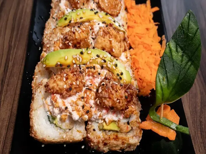 تخيّل سلطة الروبيان نفسها فوق قطعتين من التوست. النسخة المحمّلة أكثر من اللازم تمتد حتى تكاد تبلغ كل الحواف، وتجلس منخفضة وعريضة، ثم تُغطى بالأعشاب والفلفل الحار والحمضيات وربما زهرة أيضاً من باب الزيادة. لا شيء فيها خاطئ تقنياً، لكنها تبدو مزدحمة، ويختفي الخبز.