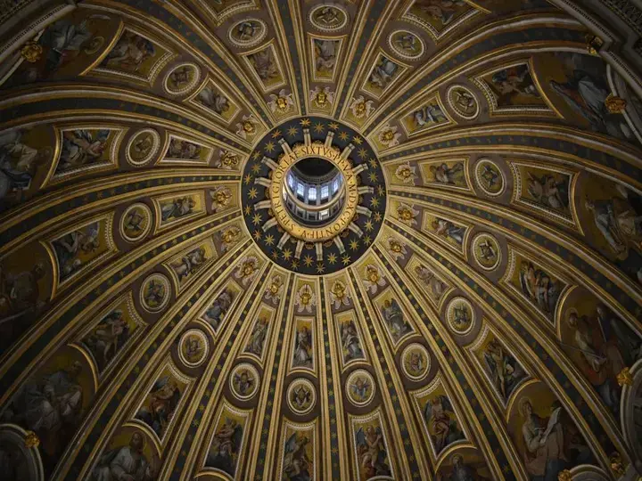 قد يبدو ما تصفه كتب الأدلة بأنه أصغر حجمًا أو أقل شأنًا، هو في الحقيقة، من الموضع الذي يقف فيه الزائر فعلًا، العنصر الذي يفرض سيطرته على المكان بأقوى صورة. وفي كاتدرائية القديس بطرس، يعني ذلك أن البيضاوي المؤطَّر بالذهب في الأعلى قد يستأثر بالانتباه أكثر من امتداد أكبر من السقف أو من مساحة أوسع في القبة، لأن العين تستجيب للتدرّج البصري، لا لمجرد الحجم وحده.