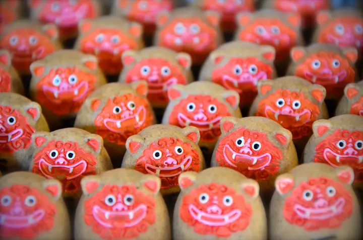 1. جيان دوي فنج: هذه الحلوى المميزة تعتبر أكثرها شهرة في الصين. تتكون من عجينة رقيقة تحشى بحشوة حلوة من الطحين والسكر والفواكه المجففة. يتم تشكيلها على شكل أقراص صغيرة وتخبز حتى تكتسب قوامًا هشًا ومقرمشًا. إنها محبوبة لدى الصينيين وتعتبر وجبة خفيفة مثالية في فصل الشتاء.