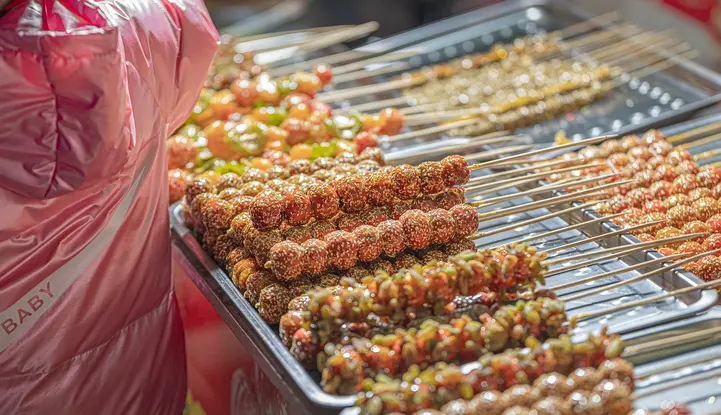 6. تانغهولو: إذا كنت تبحث عن تجربة حلوى فريدة، فإن تانغهولو هي الخيار المثالي. تتكون تانغهولو من حبات الفاكهة المغموسة في السكر الصلب، وعادة ما تكون الفراولة أو العنب هي المكونات الرئيسية. تتميز هذه الحلوى بجاذبيتها البصرية، حيث يظهر لون السكر الصلب بشكل جميل حول الفاكهة المليئة بالعصير. إن تانغهولو توفر توازنًا ممتازًا بين الحلاوة والحموضة، مما يجعلها تختفي في لحظة.
