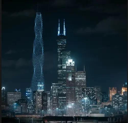 تتراوح المباني المستخدَمة كمشاهدَ ومناظرَ طبيعيةٍ من عماراتٍ تأمّلية نظريّة إلى معالِمَ أثرية لم تُكتمَل بعد، مروراً بمبانٍ أضحت الآن في حالة خراب مثل الكولوسيوم في روما. تقوم شركة ستوديو دريفت بخلق هذه التركيبات والمنشآت بالتعاون مع شركتَي درون ستوريز Drone Stories ونوفا سكايستورNova Skystorie. يتمثّل الهدف هنا في مساعدة المهندسين المعماريين على تحقيق مشاريعهم المستقبلية بطريقة مُلفِتة ومُستدامة من خلال تصوّر كيف تبدو على نطاقٍ بالحجم الطبيعي.