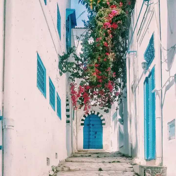تُعرف سيدي بوسعيد بأنها مدينة الأزرق والأبيض، حيث تتميز بيوتها باللونين الأبيض الناصع والأزرق السماوي، مما يعكس تأثير البحر الأبيض المتوسط والسماء الصافية. هذه الألوان ليست مجرد اختيار عشوائي، بل هي تعبير عن تراث ثقافي غني وتنوع تاريخي عميق.