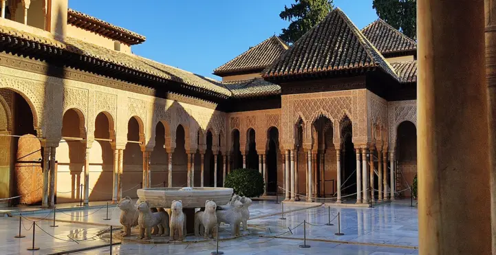 يعد قصر الحمراء واحدًا من أهم المعالم الثقافية والتاريخية في مدينة غرناطة بإسبانيا. تم تسجيل قصر الحمراء في قائمة اليونسكو للتراث العالمي في عام 1984، وذلك بسبب قيمته الفنية والتاريخية الكبيرة. يحتوي القصر على مجموعة مذهلة من القاعات والحدائق، ويعتبر نموذجًا رائعًا للعمارة الإسلامية الأندلسية. تشتهر القاعات بديكوراتها الجميلة وألوانها الرائعة وأنماطها المعقدة، والتي تعكس التقنيات الفنية الراقية التي تم تطويرها في تلك الحقبة الزمنية.