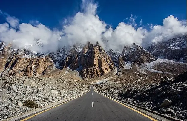 يُعرف طريق كاراكورام السريع بـ "العجيبة الثامنة للعالم"، ويمتد عبر سلسلة جبال كاراكورام ويصل إلى ارتفاع 15466 قدمًا. يعاني الطريق من الانهيارات الأرضية المتكررة التي تسببت في مقتل 1110 عامل خلال فترة البناء والتي تعد بالطبع خسارة كبيرة للغاية في الأرواج، مما يجعله من أخطر الطرق في العالم.