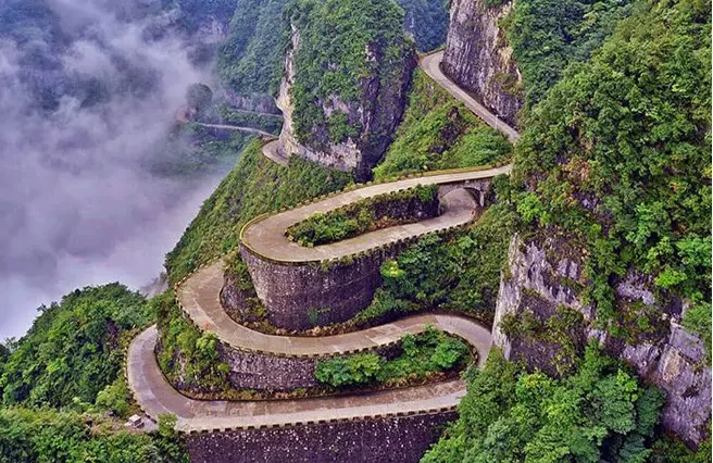 يُعرف طريق جبل تيانمن أيضًا باسم طريق تونجتيان أفينيو، وهو طريق طوله سبعة أميال يتميز بتسعة وتسعين منعطفًا، يلتف حول الجبل الشاهق. لا توجد أي همش، لذا السائقين الذين يقودون بسرعة يكونون تحت تأثير منحدر حاد لجبل تيانمن.