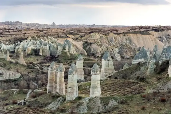تعد "مداخن الجنيات" واحدة من أكثر المعالم تميزًا في كابادوكيا. هذه التكوينات الصخرية الغريبة التي تشبه الأبراج أو الأعمدة، تكونت نتيجة للتآكل الطبيعي عبر ملايين السنين. تشكلت عندما كانت البراكين نشطة في المنطقة، حيث تدفقت الحمم البركانية والمقذوفات على السطح، وتجمعت الطبقات الصخرية فوق بعضها البعض. ومع مرور الوقت، تآكلت هذه الصخور بفعل الرياح والمياه، ما أدى إلى تشكيل تلك المداخن العالية التي تبدو وكأنها مأخوذة من عالم الخيال.