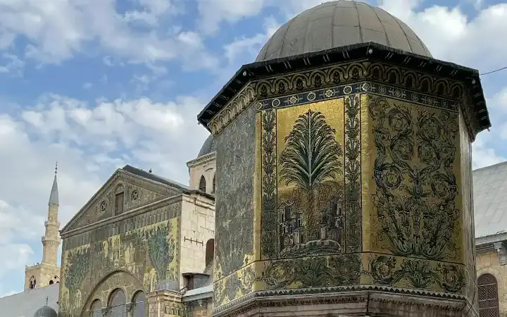 الجامع الأموي في دمشق، المعروف بالجامع الكبير، يُعد من أهم معالم المدينة ومن أعظم التحف المعمارية الإسلامية في العالم. بني في عهد الخليفة الأموي الوليد بن عبد الملك بين عامي 705 و715 م، على أنقاض معبد روماني وكنيسة بيزنطية، مما يجعله شاهداً على تلاقي الأديان والحضارات. يتميز الجامع بفنائه الواسع، وقاعاته المزينة بالفسيفساء الذهبية التي تمثل مناظر طبيعية فريدة، وثلاث مآذن شاهقة تمثل مراحل معمارية مختلفة. يُحتضن في داخله ضريح النبي يحيى (يوحنا المعمدان)، ما يمنحه أهمية روحية للمسلمين والمسيحيين على حد سواء. كما يضم مقام رأس الحسين، وله مكانة خاصة لدى المسلمين الشيعة. إلى جانب دوره الديني، يُعد الجامع مركزًا علميًا وثقافيًا منذ قرون، حيث خرج العديد من العلماء والفقهاء. زيارة الجامع الأموي ليست فقط تجربة دينية، بل هي رحلة في قلب التاريخ الإسلامي والعمارة الفريدة التي تجمع بين الجمال والقدسية.