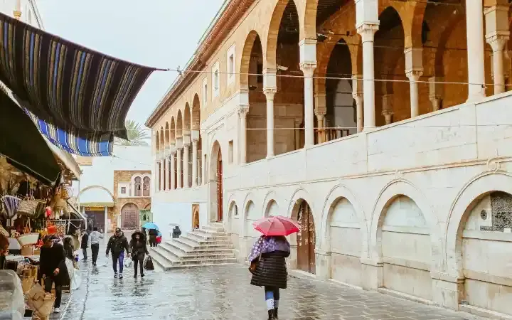 تُعد دمشق، عاصمة سوريا، أقدم مدينة مأهولة بالسكان بشكل مستمر في العالم، إذ يمتد تاريخها لأكثر من 11,000 عام. تقع المدينة عند سفح جبل قاسيون وتُروى من نهر بردى، وقد شكّلت دمشق مفترق طرق للحضارات المتعاقبة، من الآراميين والرومان إلى الأمويين والعثمانيين. واليوم، تمثل المدينة مزيجاً حياً من العمارة القديمة والمعالم الروحية والأسواق النابضة بالحياة والتقاليد الثقافية العريقة. المشي في شوارع دمشق يُشبه التجول في متحف مفتوح، حيث كل زقاق وقبة وسوق تحكي قصة من الصمود والإرث.