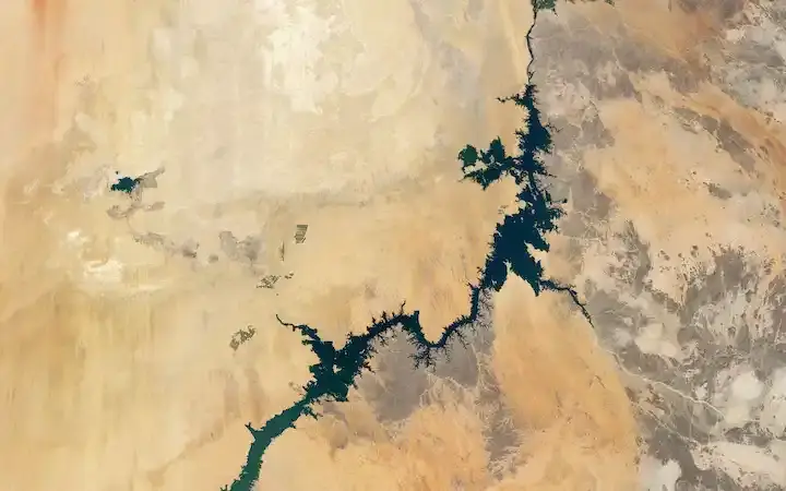 صورة لبحيرة ناصر التي تشكلت خلف السد العالي