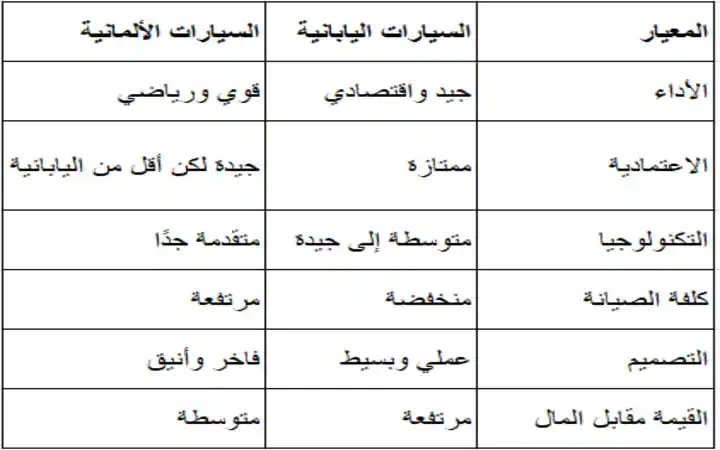 إذا كنت تبحث عن سيارة تتحمل الظروف المناخية والطرق العربية، وتُناسب ميزانيتك، فالسيارة اليابانية غالبًا هي الخيار الأذكى. أما إذا كنت تبحث عن رفاهية، متعة قيادة وتقنيات عالية، وتقبل الكلفة الأعلى، فالسيارة الألمانية هي خيارك المثالي.