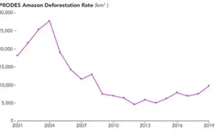 سرعة تدهور الأراضي في منطقة الأمازون بين 2001 و2019
