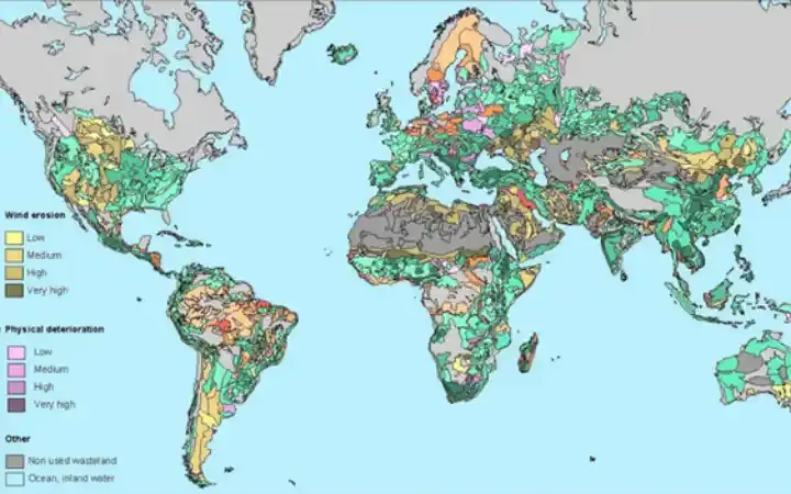 • آثار النظام العالمي للملاحة عبر الأقمار الصناعية (GNSS): تُحذِّر اليونسكو من التآكل الناتج عن إزالة الغابات والزراعة المكثفة؛ وتقترح مؤشراً عالمياً لصحة التربة.