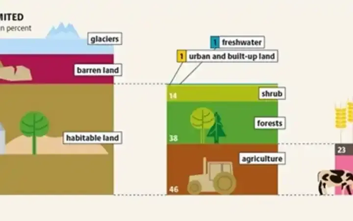 توزّع الأراضي بين قاحلة ومأهولة وشجيرات وغابات وأراضي زراعية للمحاصيل وتربية المواشي