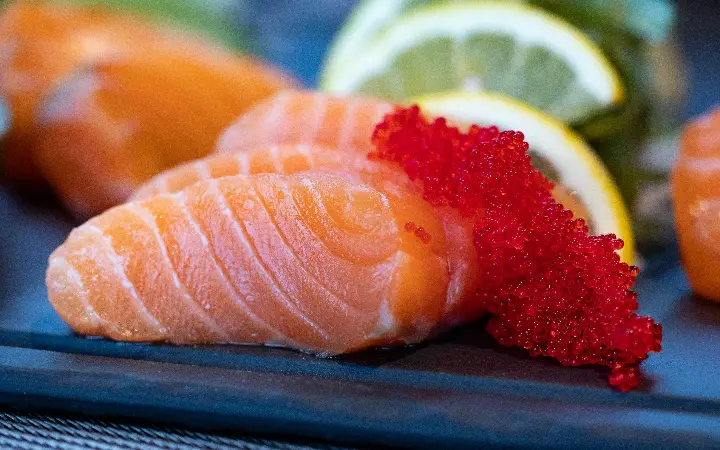 تُقدّم لفائف السلمون في طبق زجاجي أو أبيض مع شرائح الليمون. يمكن تقديمها مع خبز محمّص أو كراكرز لإضافة قوام مقرمش.