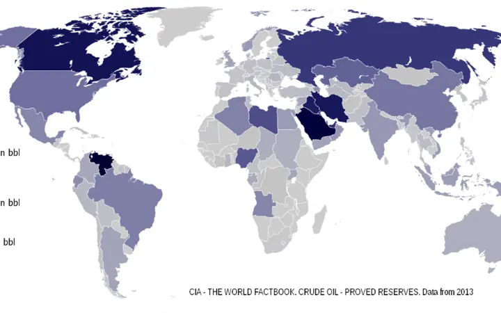 تتوزع احتياطيات النفط المؤكدة بشكل غير متساوٍ. وفقًا لبيانات منظمة أوبك:
