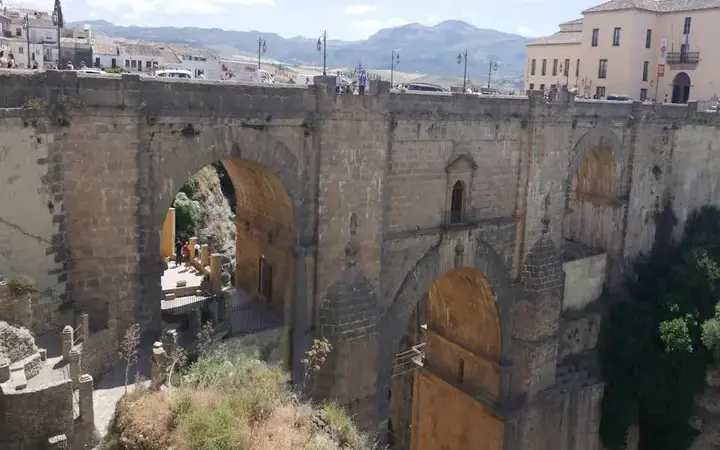 Puente Nuevo in Ronda feels inseparable from El Tajo because it repeats the gorge’s color, weight, and geometry. Rather than disappearing into the landscape, the massive stone bridge belongs by boldly echoing the canyon it spans.