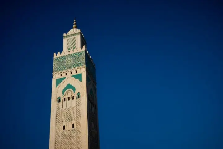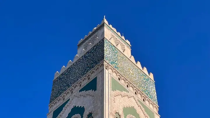 ترتفع مئذنة مسجد الحسن الثاني في سماء العاصمة المغربية الرباط، كامنةً في جمالها وعظمتها، فتعكس تاريخًا عميقًا وثقافةً غنية. إنها عمود يحمل بصمات التراث المغربي ويروي قصةً تاريخيةً مليئةً بالمعاني والرموز العميقة.