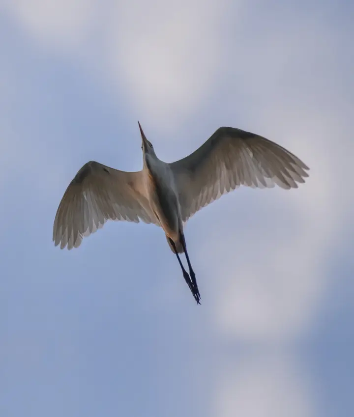 عندما يفرد جناحيه، يظهر الكركي الأبيض تصميماً مذهلاً من الألوان والرسومات الهندسية. يتمايل بأناقة في الهواء ليشكل لوحة فنية متحركة، تلتقط أنفاس كل من يشهدها. تكمن قوته السحرية في هذا العرض المدهش الذي يبدو وكأنه تحفة فنية تروي قصة عميقة عن الجمال والألوان.