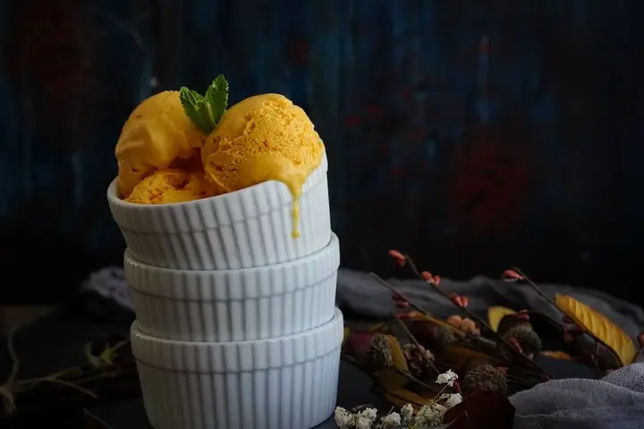 إذا كنت ترغب في إضفاء لمسة من الحلاوة والقوام الكريمي على آيس كريم المانجو، فصوص الكراميل هو الخيار الأمثل. قم بإضافة بعض الكراميل المملح أو العادي إلى العجينة الخاصة بآيس كريم المانجو قبل تجميدها لتحصل على توازن مثالي بين الحموضة والحلاوة.